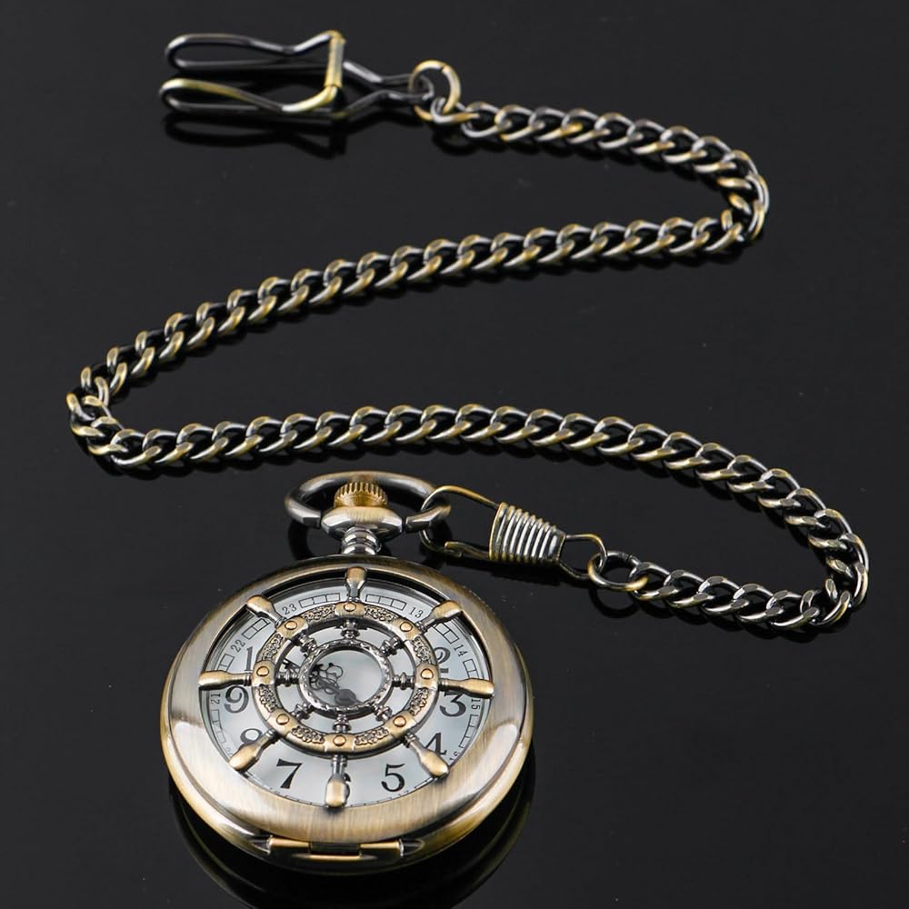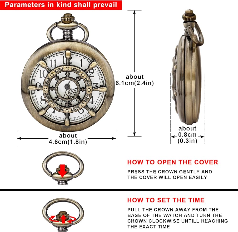 The diameter is about 4.5 cm/1.77inch, and the volume is small and easy to carry. Each of our men's and women's watches is equipped with a 37cm/14.56inch long pocket watch chain, which is long enough to fix the pocket watch easily.Easy to replace.