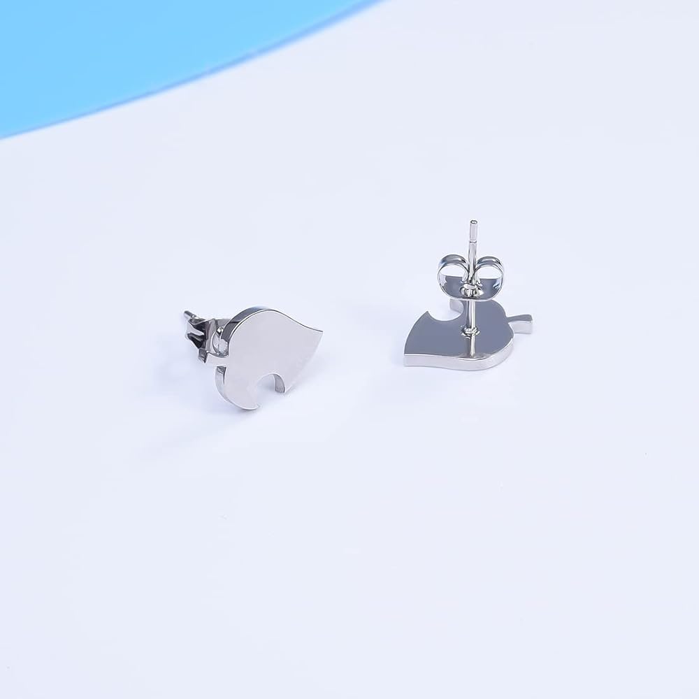 SUU Animal Crossin Leaf Earrings Tom Nook Animal Villagers Silver Stud Earrings New Horizon Jewelry