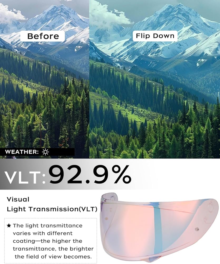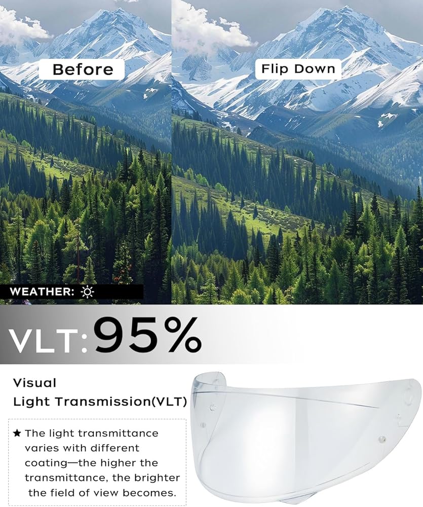 Crystal-clear Vision & Impact Protection: Engineered with 3rd-gen polycarbonate, delivering 99.9% optical clarity for distortion-free vision. Impact protection is as high impact resistance as OEM HJ-34P visors. Maintaining clarity no matter in the highway or through gravel zones.
