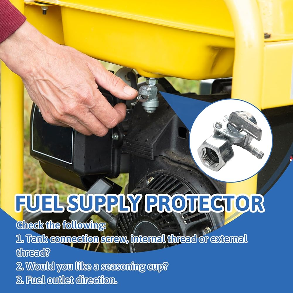 [Applicable Models]Suitable for most generator fuel tanks. Gasoline generator tank fuel switch valve plug is compatible with 5.5HP 6.5HP 7HP 8HP 9HP 11HP 13HP 14HP 15HP 16HP 163cc 196cc 208cc 212cc, but please carefully compare the picture with your original generator fuel plug