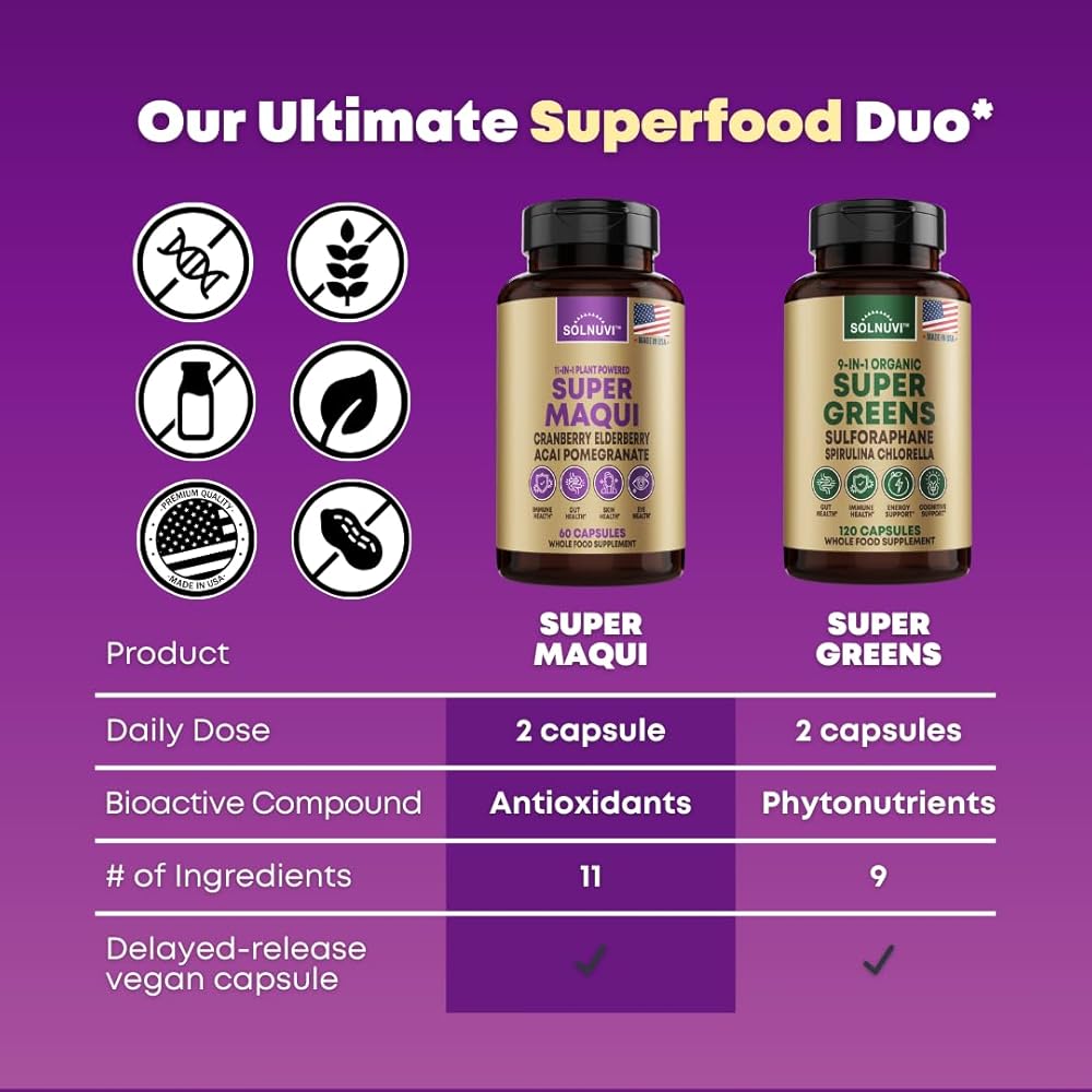 PREMIUM BIOACTIVE FORMULA: With an impressive nutrient profile, Solnuvi's Organic Super Greens Supplement brings together 9 potent superfoods, including Spirulina, Chlorella, Kale Cruciferous Vegetable, Wheatgrass, and more which creates a powerful green synergy impact per serving. Our comprehensive solution is designed to deliver lots of potent antioxidants, phytonutrients, bioactive compounds, sulforaphane, essential vitamins & minerals providing your body with the strong support it deserves.