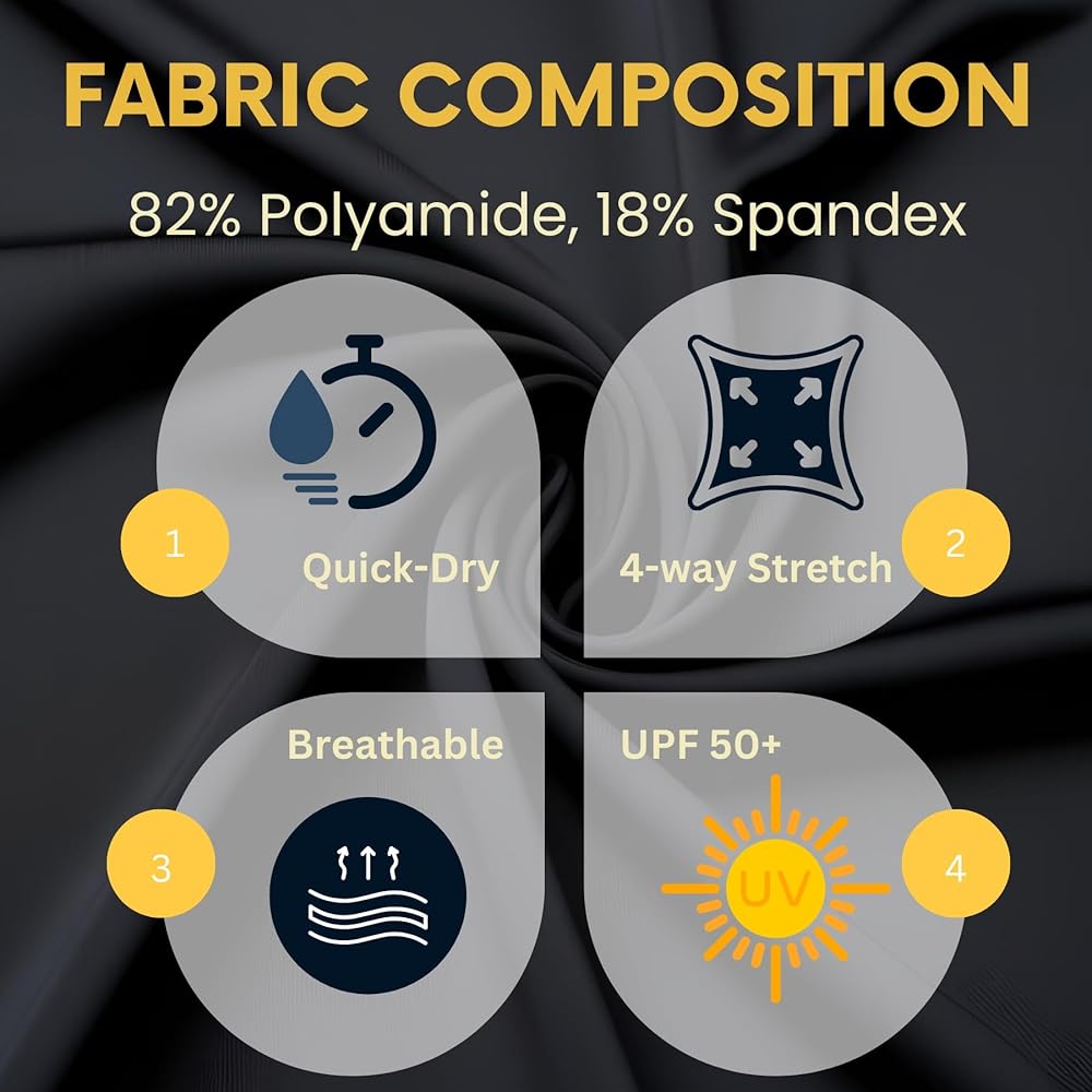 HYDROPHOBIC COATING & UPF 50+ PROTECTION: Lightweight breathable fabric with hydrophobic coating allows faster drying after swim training. UPF 50+ sun protection blocks harmful UV rays to prevent skin damage.
