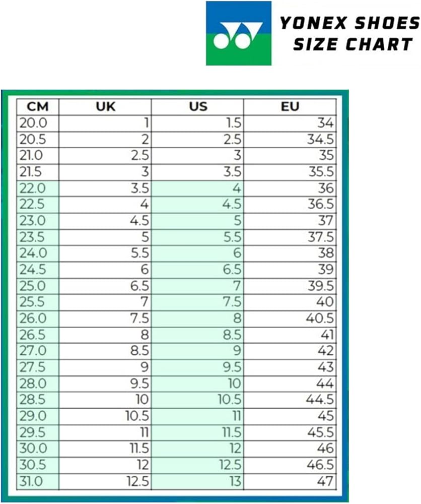 | Centimeters | 23.5 | 24.1 | 24.4 | 24.8 | 25.4 | 25.7 | 26 | 26.7 | 27 | 27.3 | 27.9 | 28.3 | 28.6 | 29.4 | 30.2 | 31 | 31.8 |