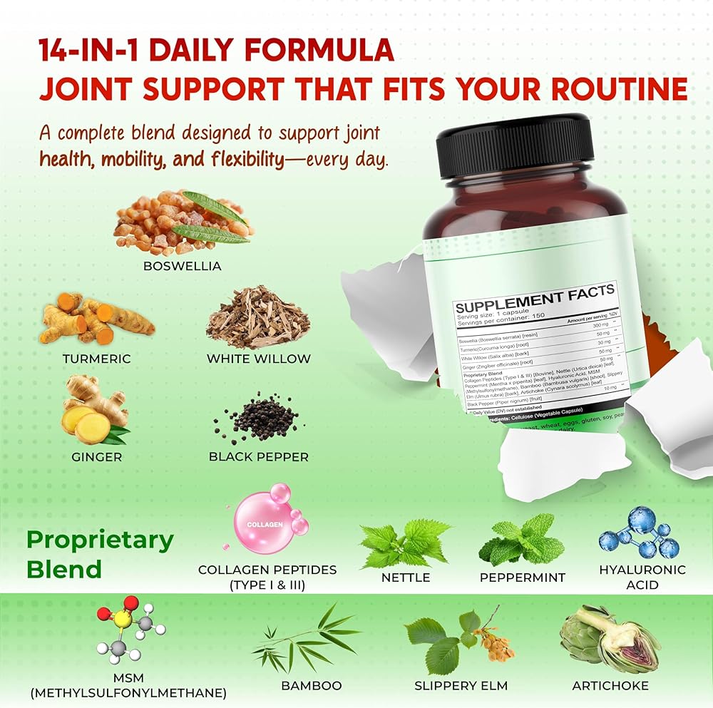 Our formula, featuring 13 synergistic ingredients like Boswellia, Turmeric, White Willow, and more, supports healthy digestion and joint flexibility, helping you feel lighter after meals, move with ease, and stay confident in any activity, every day.