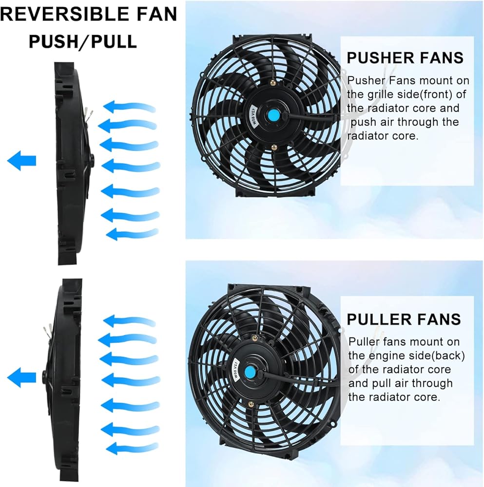 PUSH/PULL:Electric radiator cooling fan is reversible. It can be used as a puller.