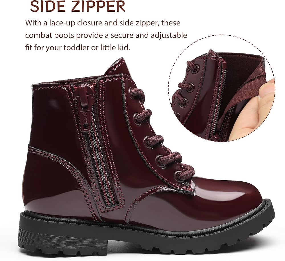 Easy to Wear: With a lace-up closure and side zipper, these combat boots provide a secure and adjustable fit for your toddler or little kid. The lace-up feature adds an extra touch of style, while the side zipper allows for easy on and off.