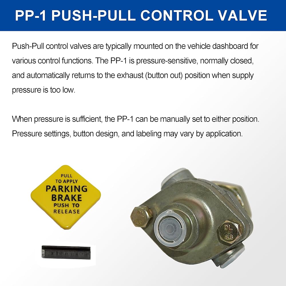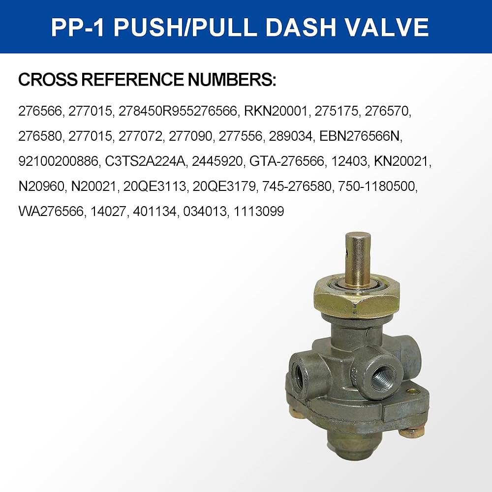 276566 PP-1 Dash Control Valve - 20PSI 1/8" Push/Pull Control - Replacement for Bendix 276566 277015|Haldex KN20021| - Truck and Trailer Dash Air Valve for Parking Emergency Brake Contol
