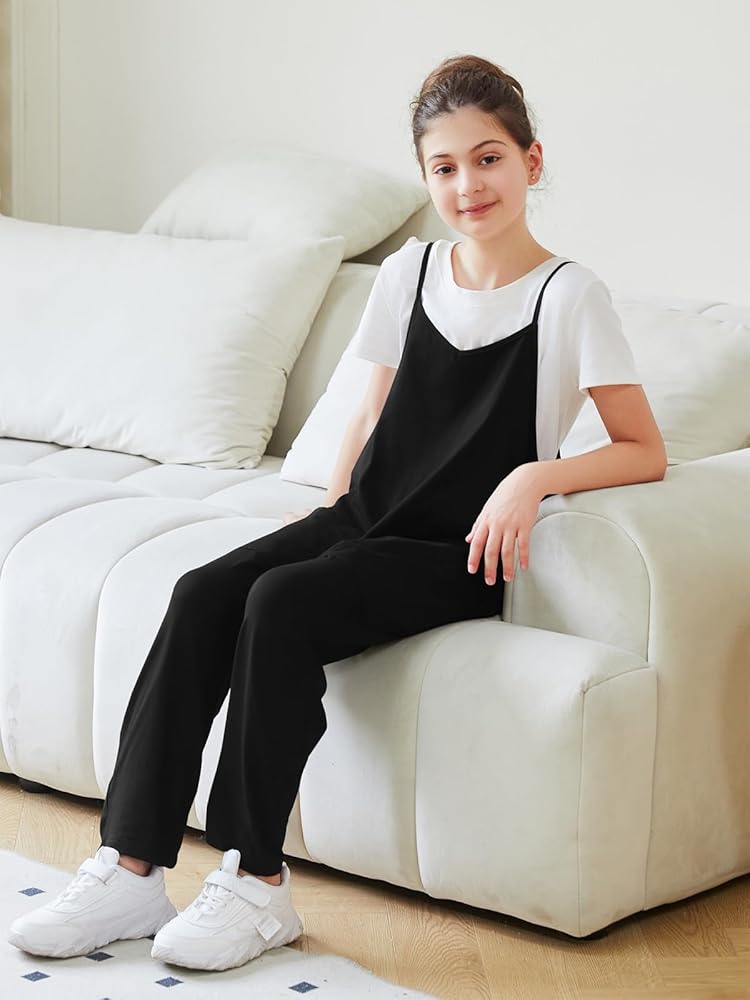 【Features】 Classic solid color romper for girls features a slouchy, relaxed-fitting design, v neck, sleeveless, wide leg long pant, loose casual jumpsuit with adjustable spaghetti strap, soft overalls, with two side big pockets. Your girl will look adorable in it and will get lots of compliments.
