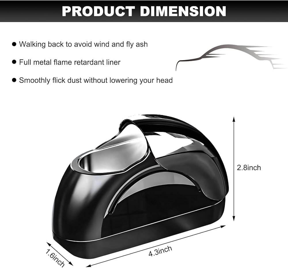【Windproof Lid Design】: The side-sliding lid is cleverly designed that allows the user to open and close it with one hand. The side opening allows for easy flicking of ash and is less likely to fly out. Closing the storm lid effectively locks the ash inside, keeping the car space clean.