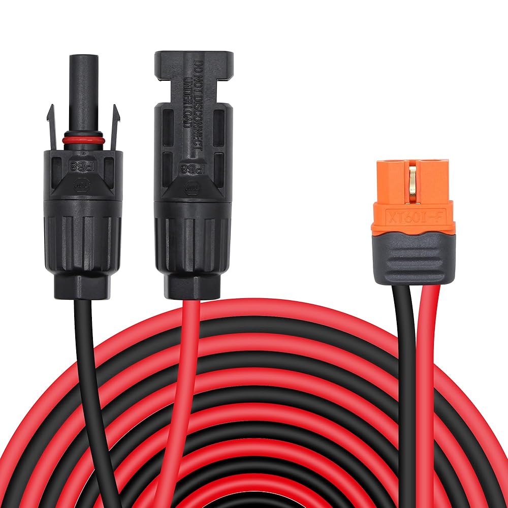 ☀12AWG Wire: XT60 to solar connector cable's use 12AWG tinned copper wire, good conductivity, low loss and fast transmission speed. Tinned copper conductor also has good corrosion resistance and oxidation resistance, longer service life.