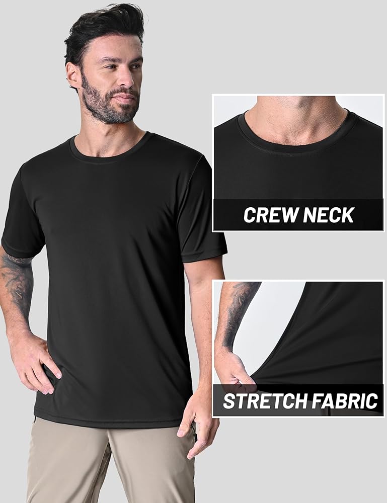 Material: 100% polyester, lightweight, breathable and moisture wicking, short-sleeved T-shirt to keep you refreshed all summer long