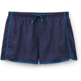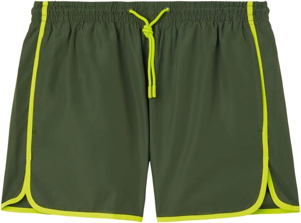 Men's swim trunks with contrast color side trim. Colored drawstring at the elastic waist. Side pockets with internal mesh and back pocket with 3D logo. The style is inspired by the worlds of sport and running wear. Quick-drying soft and comfy fabric.