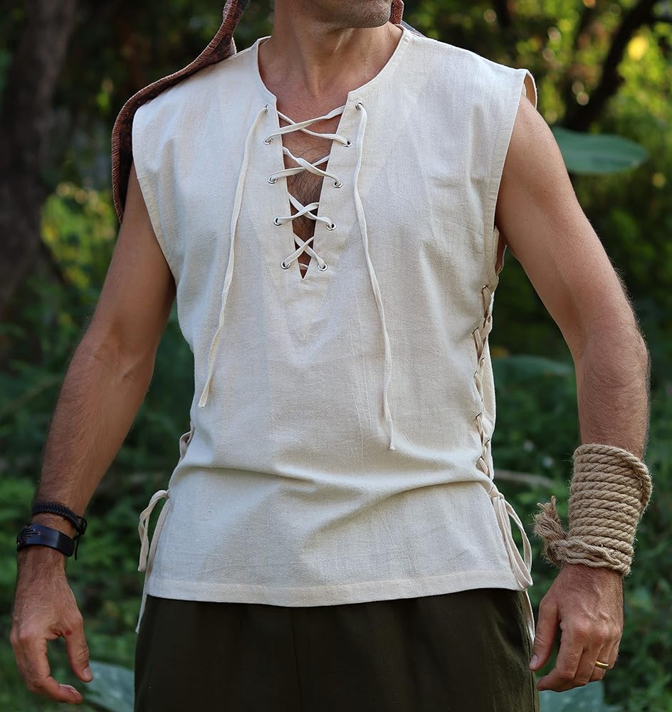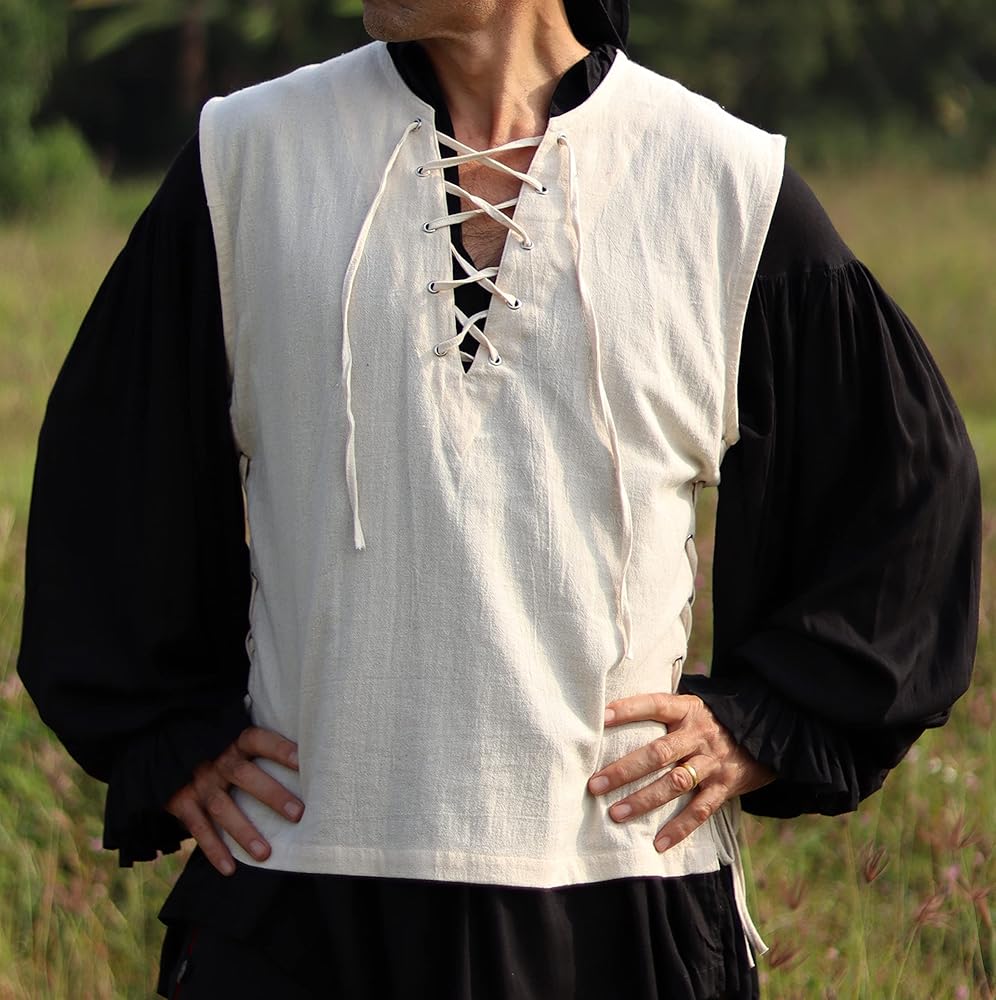 Classic Renaissance Vest - Sleeveless Pirate Medieval Shirt Open Collar
