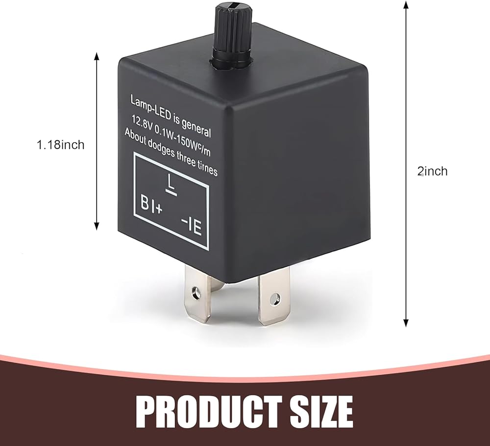 Product Details: The package includes 1 piece of CF13KT flasher with an overall height of 2"/51mm and a housing width of 1.18". Standard pin position, easy to use and replace, plug and play. Suitable for most cars, trucks, etc.