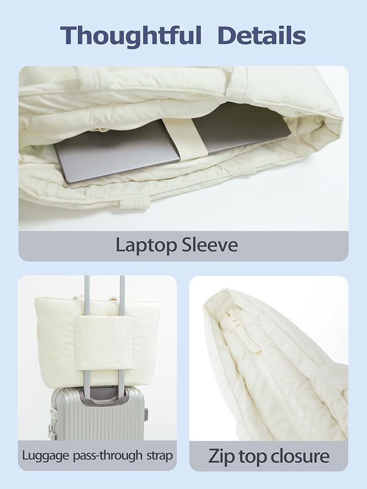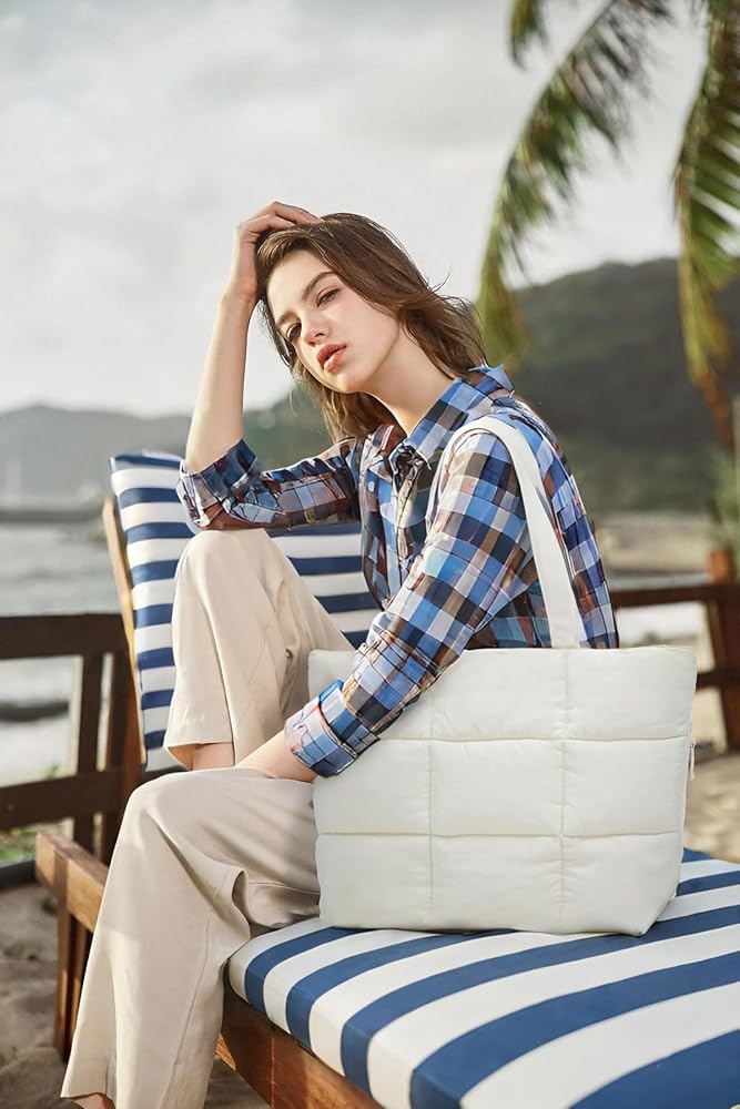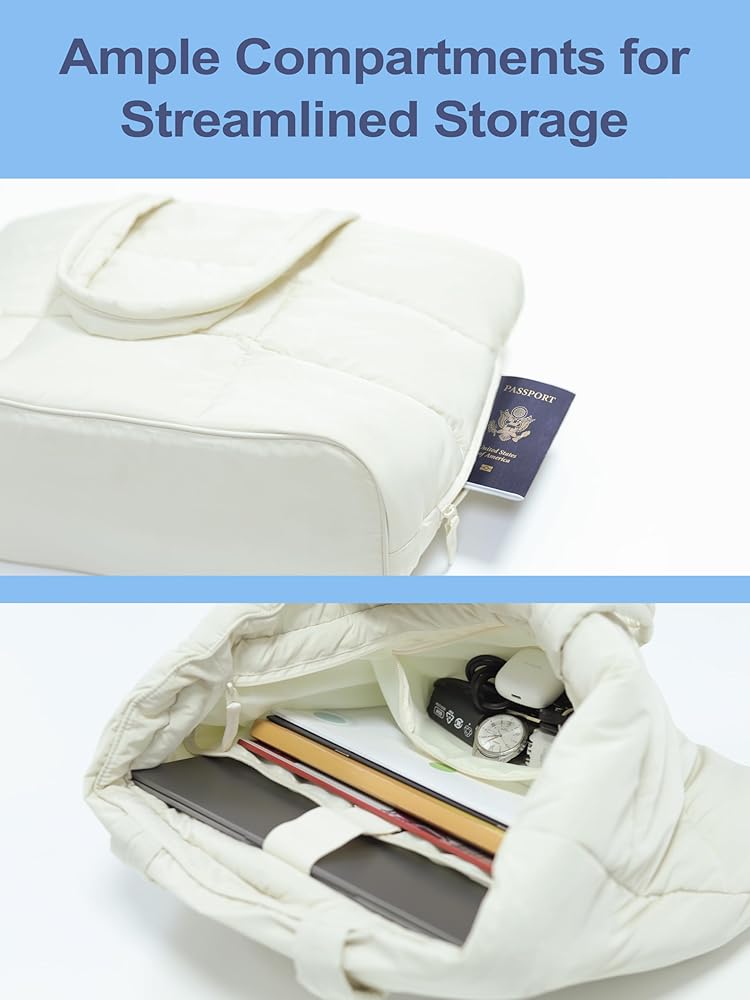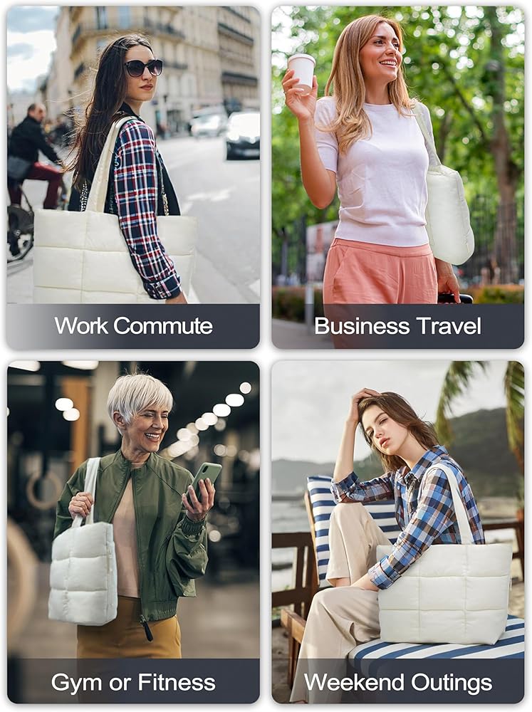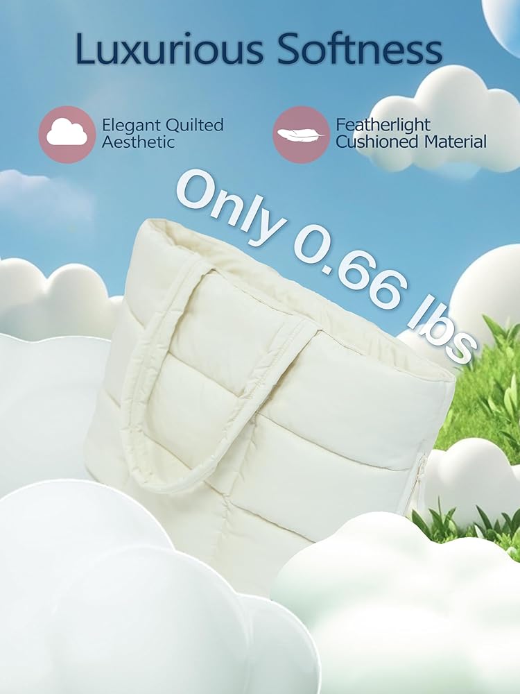 𝐖𝐚𝐭𝐞𝐫-𝐑𝐞𝐬𝐢𝐬𝐭𝐚𝐧𝐭 & 𝐋𝐢𝐠𝐡𝐭𝐰𝐞𝐢𝐠𝐡𝐭 - Made from durable, water-resistant down material, this tote keeps your belongings safe from rain and snow. At just 0.66 lbs, it offers comfort without compromising on style.