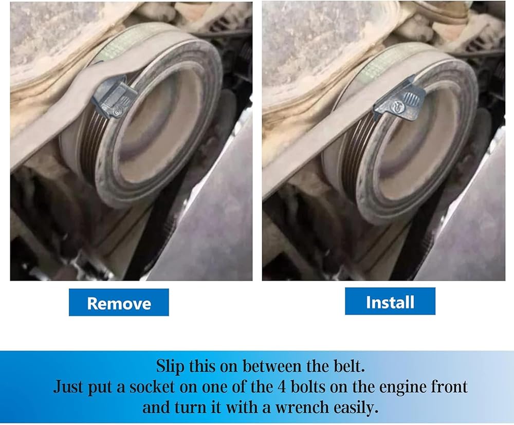 ★Easy to Use: Just place the car belt remover installer between the pulley groove and the belt. Then turn the pulley one turn clockwise to install or remove.