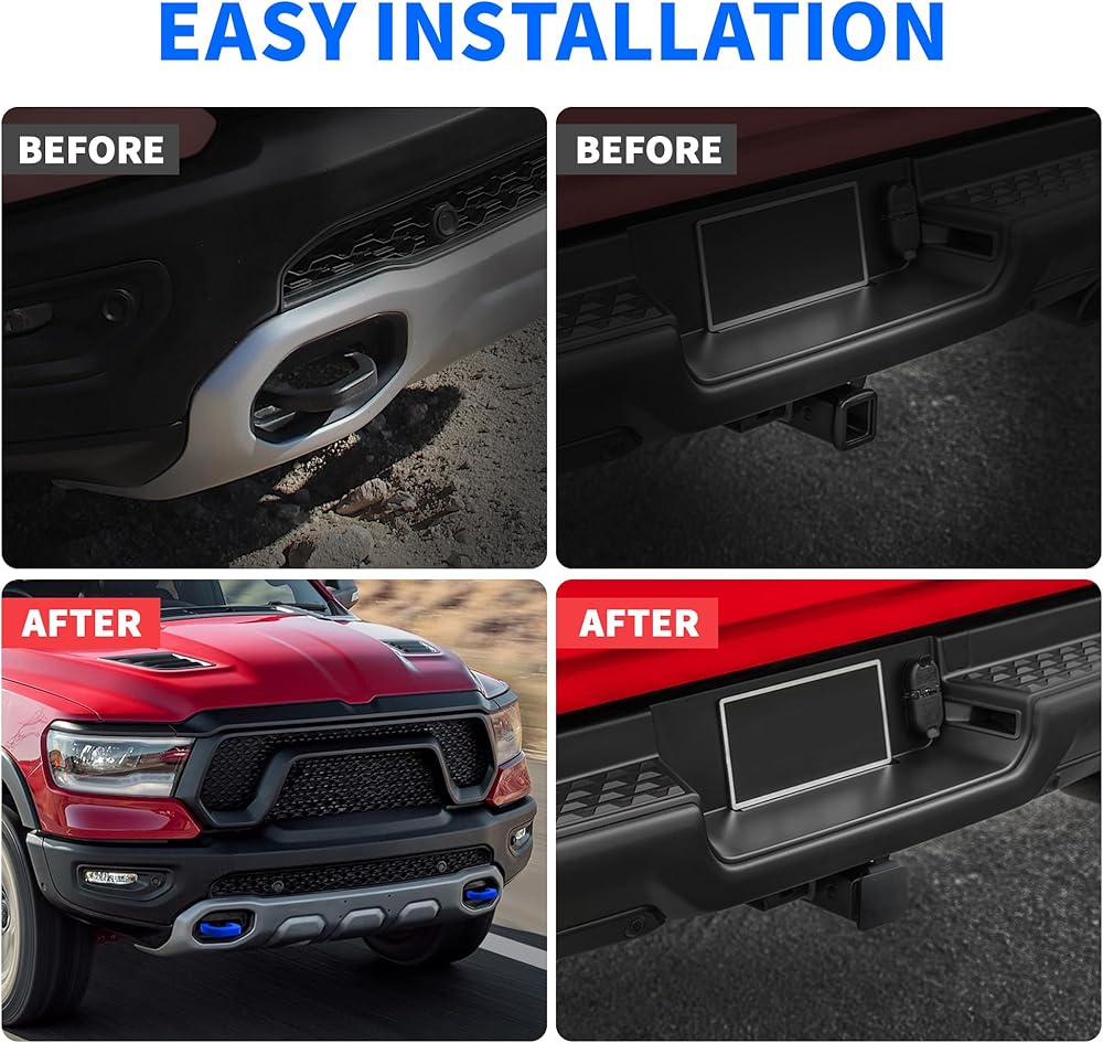 IMPORTANT NOTICE: Our towing hook cover is not suitable for RAM 1500 (2009 - 2018), RAM 1500 Classic (2019 - 2024), RAM 2500, and RAM 3500.