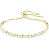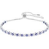 The design combines clear Swarovski Zirconia and rhodium plating, finished with an adjustable sliding closure to fit any wrist size