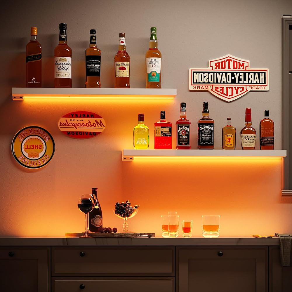 Easy Installation and Maintenance: With a installation instruction and all necessary accessories, including 3M tape adhesive, LED strips and invisible brackets, setting up your shelf is a breeze. The LED strip is securely fastened to the shelf with the backing tape. Maintenance is simple, just wipe with a damp cloth. To prolong the LED strip's life, avoid using in damp environments, as moisture can shorten its lifespan.