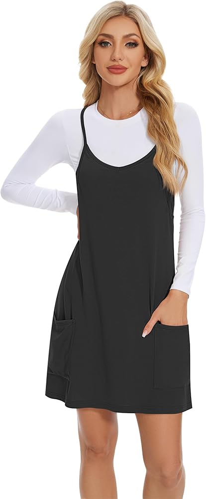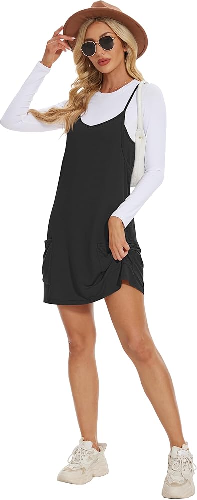 Feature - This casual mini dress has a soft fabric, patch pockets and comfy shorts, making it perfect for staying cool and stylish during hot summer days. The spaghetti straps short dress and charming design are sure to make a statement