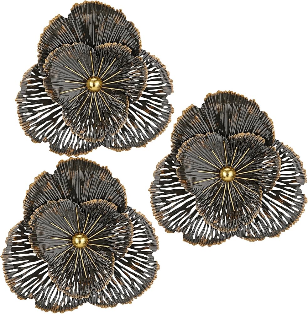 DILATATA 3 Pcs Metal Flower Wall Art Set 10 Inch Rustic Modern Floral Sculpture 3D Metal Flower Wall Hanging Accent for Indoor Living Room Bedroom Kitchen Bathroom Garden Patio Decor - Black