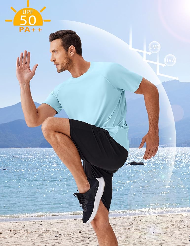 Suitable for Various Sports Scenes : Our summer shirts for men is great for a day of fishing, gym, swimming, hiking, traveling, boating, climbing, beach,walking, bike riding, skating, surfing, running, workout and any other of your favorite active outdoor sports.It is also a practical and popular holiday gift for men on Father's Day, Valentine's Day, and Fishing Day