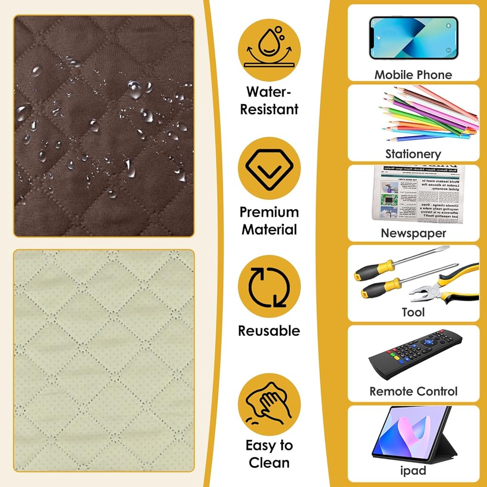 【Durable & High-Quality Materials】Our armchair caddy is crafted from premium non-woven fabric, PP foam, and a silicone anti-slip net, ensuring durability, wrinkle resistance, and fade resistance. It's also machine washable, making it a long-lasting and easy-to-maintain couch organizer for your living space.