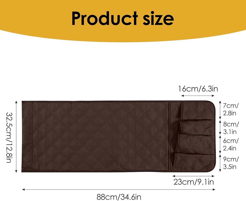 【Ample Storage Space】This sofa armrest organizer features 5 spacious pockets, including a large one for books or magazines and 4 smaller ones for remotes, glasses, phones, and other essentials. It's the perfect recliner arm caddy to keep everything within reach while protecting your sofa from clutter.