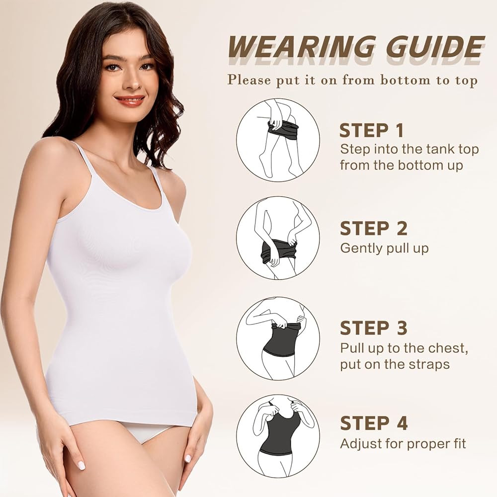 Adjust Flexibly & No Rolling Up:Our tummy control shapewear tank features adjustable shoulder straps,which you can flexibly adjust to fit your body,ensuring snugness and comfort.Wide double-layered hem of this compression tank camisole for women provides extra support and stability,effectively avoiding rolling up.Our tummy control compression camisole for women allows you to effortlessly and comfortably enjoy the confidence that body-shaping brings.