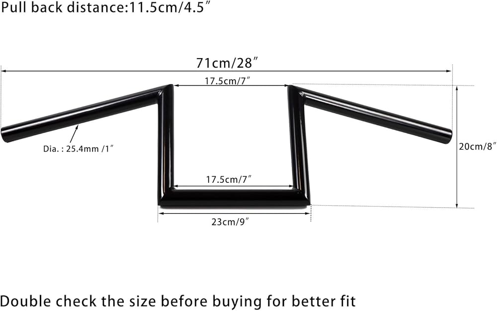 Universal 1 inch (25.4mm) handlebar fit for Harley-Davidson, fit for Honda, fit for Yamaha, fit for Suzuki, fit for Kawasaki, fit for Most Chopper Cruisers Bobber Bike Cafe Racer or any custom applications.(Please check the application according to the measurement above.)