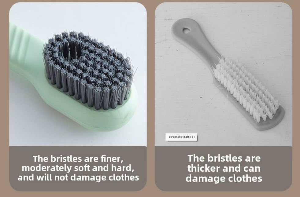 Discover the ultimate multifunctional cleaning brush designed for gentle yet effective care of your shoes. This innovative brush features finer, moderately soft bristles that won't damage your clothes or shoes while providing thorough cleaning action. The ergonomic handle design offers comfortable grip and control during use, while the durable bristles quickly rebound and maintain their shape over time. Available in fresh mint green and classic white colors, this versatile brush is perfect for tackling various cleaning tasks. The brush head is engineered for optimal cleaning performance with its strategic bristle arrangement. Easy to wash and decontaminate after use, this practical tool makes clothing maintenance or shoes maintenance simpler and more efficient. The thoughtfully designed bristle density ensures thorough cleaning while being gentle on fabrics, making it an essential addition to your laundry care routine.