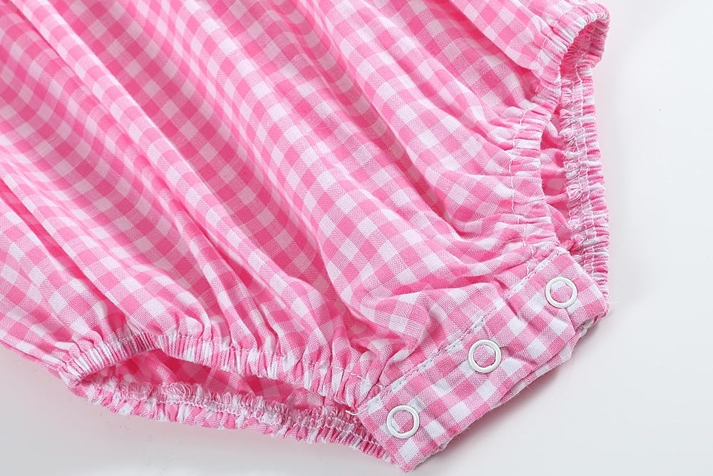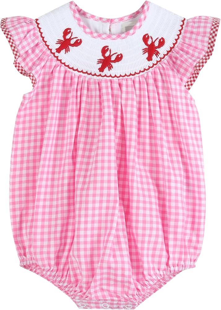 This adorable flutter romper is both comfortable and cute! It is ideal for the little girl in your life who loves crawfish. The romper is made of pink gingham cotton fabric and has cute crawfish embroidery. Your little one will adore the fit, and you'll appreciate the charming style!