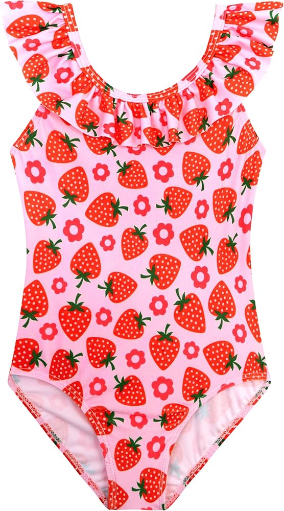 【Unique Design】Girls bathing suits have fashionable and beautiful pattern, such as mermaid, flamingo, floral, purple diamond print, strawberries pattern and etc. The ruffled straps and ruffled neckline provide both coverage and a cute, stylish look for your girl!