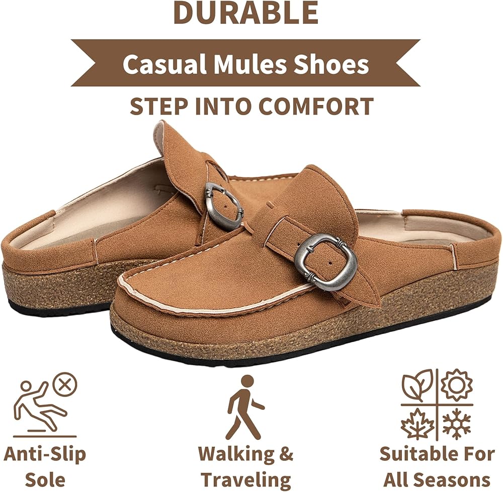 【Versatile Slip-On Style】Built to last! Crafted with reinforced stitching and premium materials, these mules for women 2025 combine clog-inspired toughness with lightweight flexibility, ensuring year-round wear for indoor/outdoor adventures.