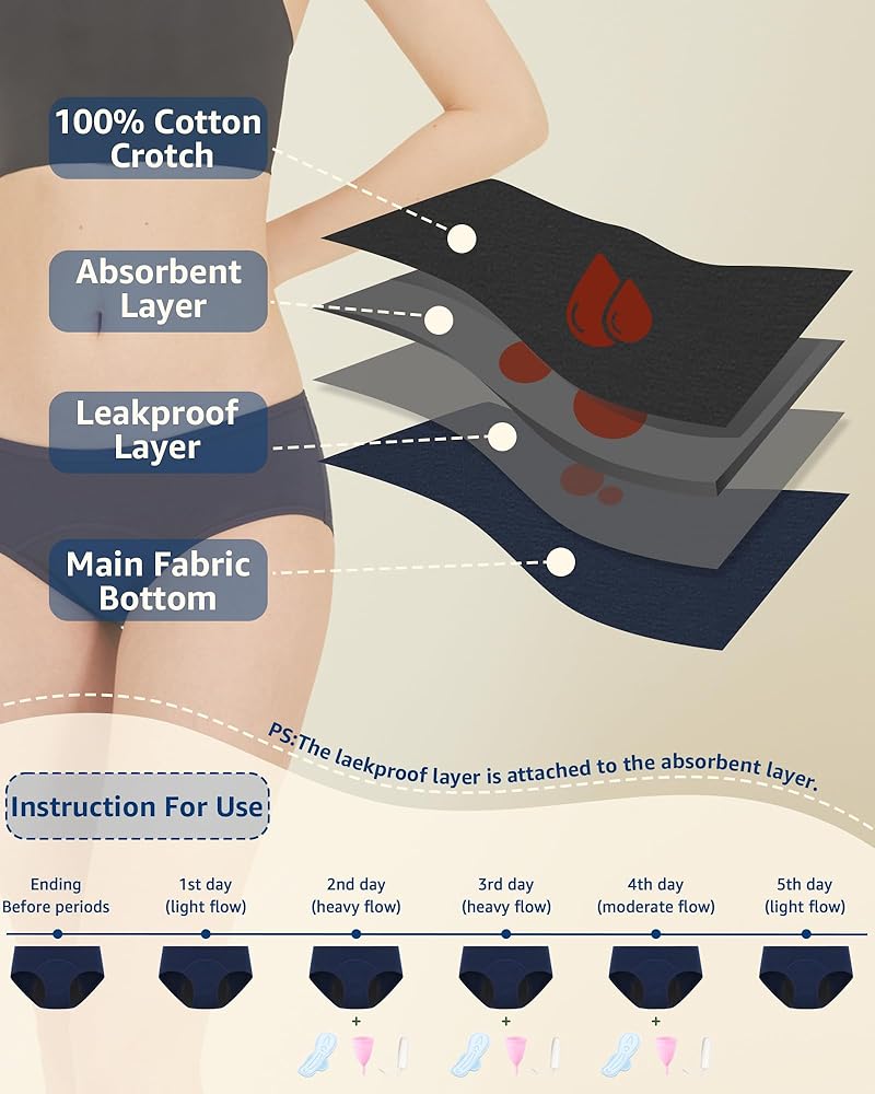 Perfect for All girls: POPKOK period underwear have a 4-layer structure consisting of the body fabric, leakproof layer, absorbent layer, and inner crotch, providing additional protection on special days (PS: The leakproof layer is attached to the absorbent layer). The protection area is widened thoroughly, not only for the back but also for the front part. It should be noted that please use it in combination with other menstrual products such as pads, cups, and tampons on heavy days.