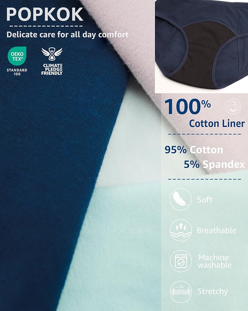 Good Gift Ideas: POPKOK 4-pack teen girls period underwear have a simple classic design with multiple color options, which will give you colorful choices every day. They can even be everyday wear for junior girls, which work great at home, casual, or sports.