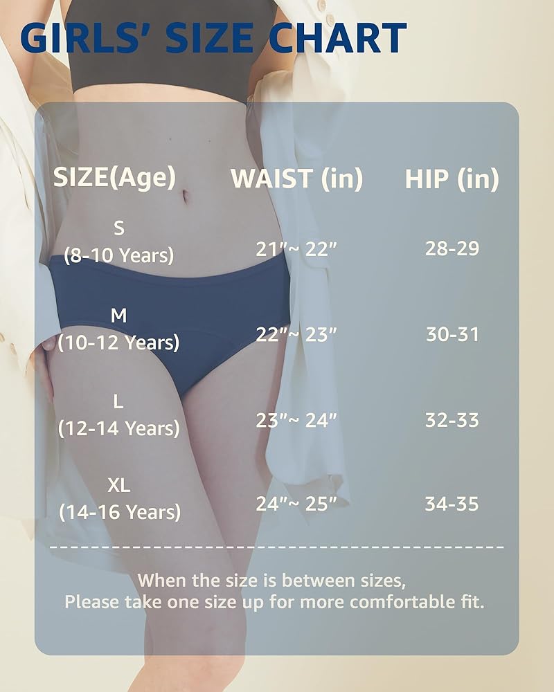 Pay Attention to the Health of Teen Girls: It is necessary for teen girls to change their period underwear regularly, which is good for your health. A four-piece set of teenage briefs will meet your replacement requirements. Following the washing instructions can prevent the panties from shrinking and prolong the life of the panties.