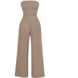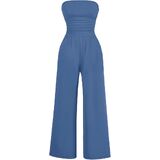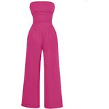 Feature: One Piece Sleeveless Jumpsuits, strapless, sleeveless, off shoulder, backless, solid color or printed, 3 side pockets, high waist, wide leg