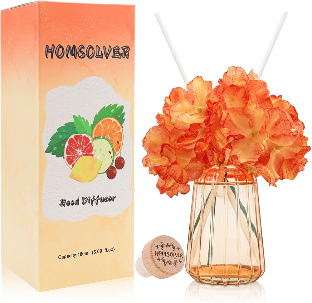 Homsolver Home Decor Reed Diffuser Set, Gifts for Women, 6.09 OZ Fruity Scent Diffuser with 6 Reed Diffuser Sticks for Home Bedroom Bathroom Living Room Office Shelf Decor, Birthday Gifts for Women