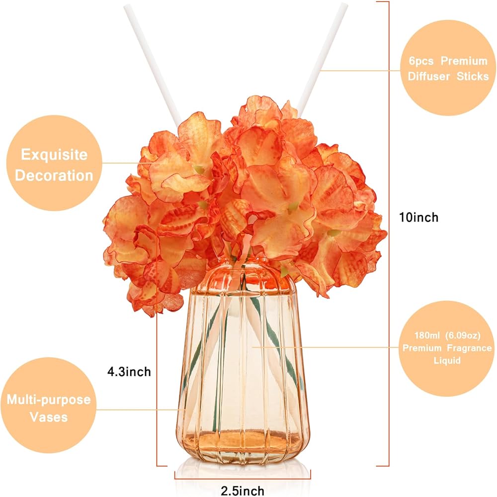 𝗡𝗮𝘁𝘂𝗿𝗮𝗹 𝗮𝗻𝗱 𝗟𝗼𝗻𝗴 𝗟𝗮𝘀𝘁𝗶𝗻𝗴 𝗙𝗿𝗮𝗴𝗿𝗮𝗻𝗰𝗲: Our reed diffuser set includes six reed diffuser sticks and 180 ml of scented liquid. The high-quality reed diffuser sticks help release the natural aroma of essential oils, while the generous amount of fragrance liquid ensures a long lasting olfactory experience that can endure for 60to 90 days