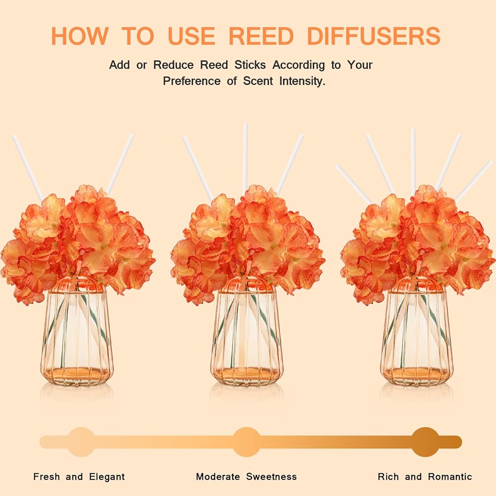 𝗕𝗲𝗮𝘂𝘁𝗶𝗳𝘂𝗹 𝗮𝗻𝗱 𝗚𝗿𝗮𝗰𝗲𝗳𝘂𝗹 𝗛𝗼𝗺𝗲 𝗗𝗲𝗰𝗼𝗿: The reed diffuser combines exquisite eternal decoration, filling the air with a wonderful aroma while enhancing your hoom decor with a natural and Graceful feeling. Our diffuser reeds are perfect for complementing your home decor, whether it's in your living room, bedroom, bathroom decor, office or shelf decor and tables decor, adding vibrancy and color to your interior