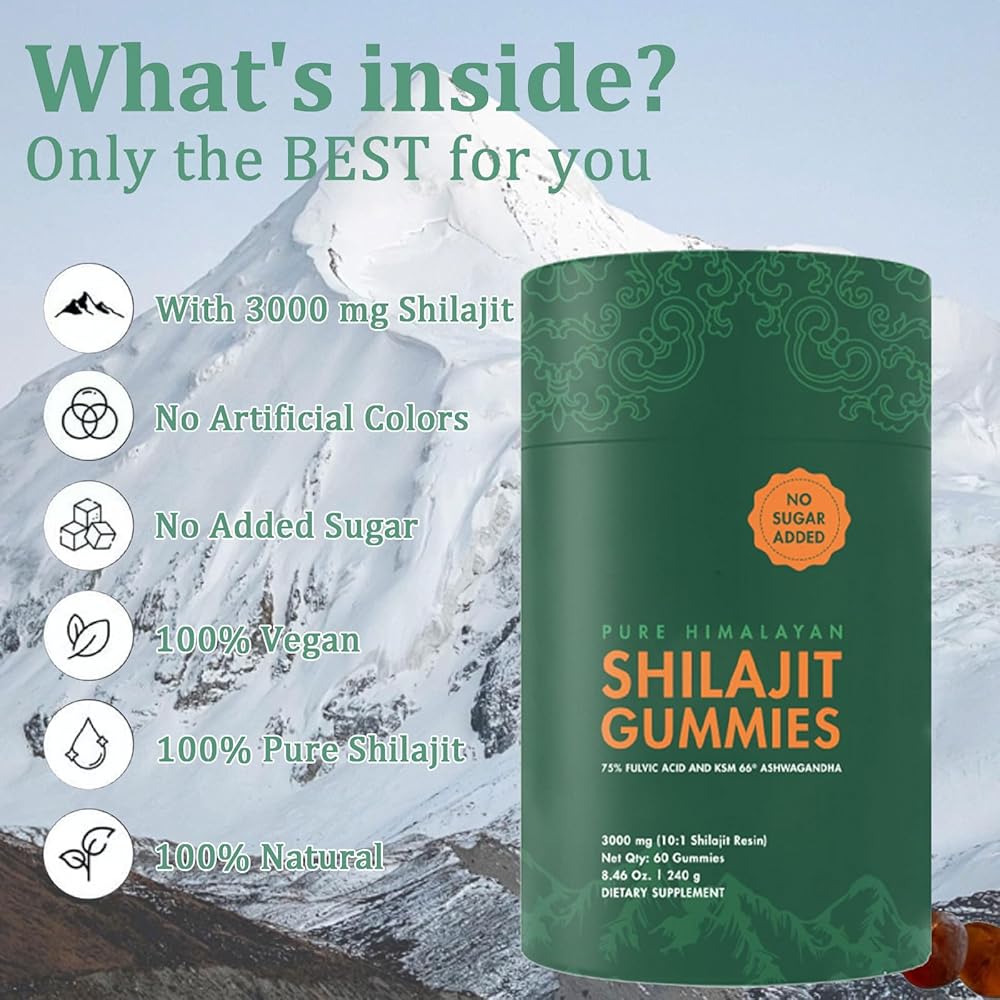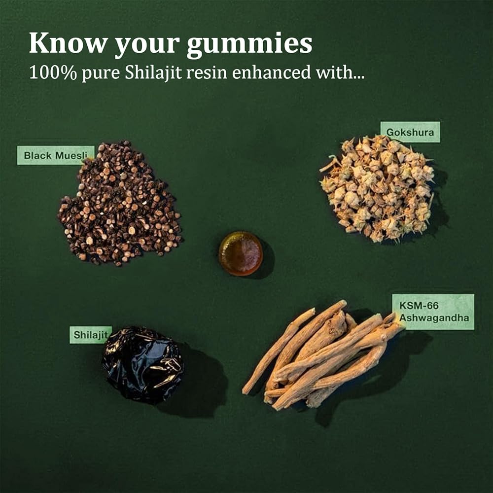 Shilajit Gummies I Shilajit for Men | Pure Himalayan Shilajit Gummies | KSM-66 Ashwagandha, Gokshura 75%+ Fulvic Acid & 85+ Trace Minerals I Non-GMO I Natural & Organic I 60 Gummy