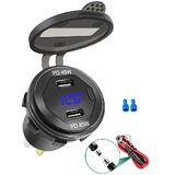 LENKRAD Quick Charge 3.0 USB Outlet 12V/24V with Blue Voltmeter, Waterproof Marine New Energy USB Outlet,Rv Dual USB Charge Port Electrical Outlet with Fast Charge USB for Golf Cart Motorcycl