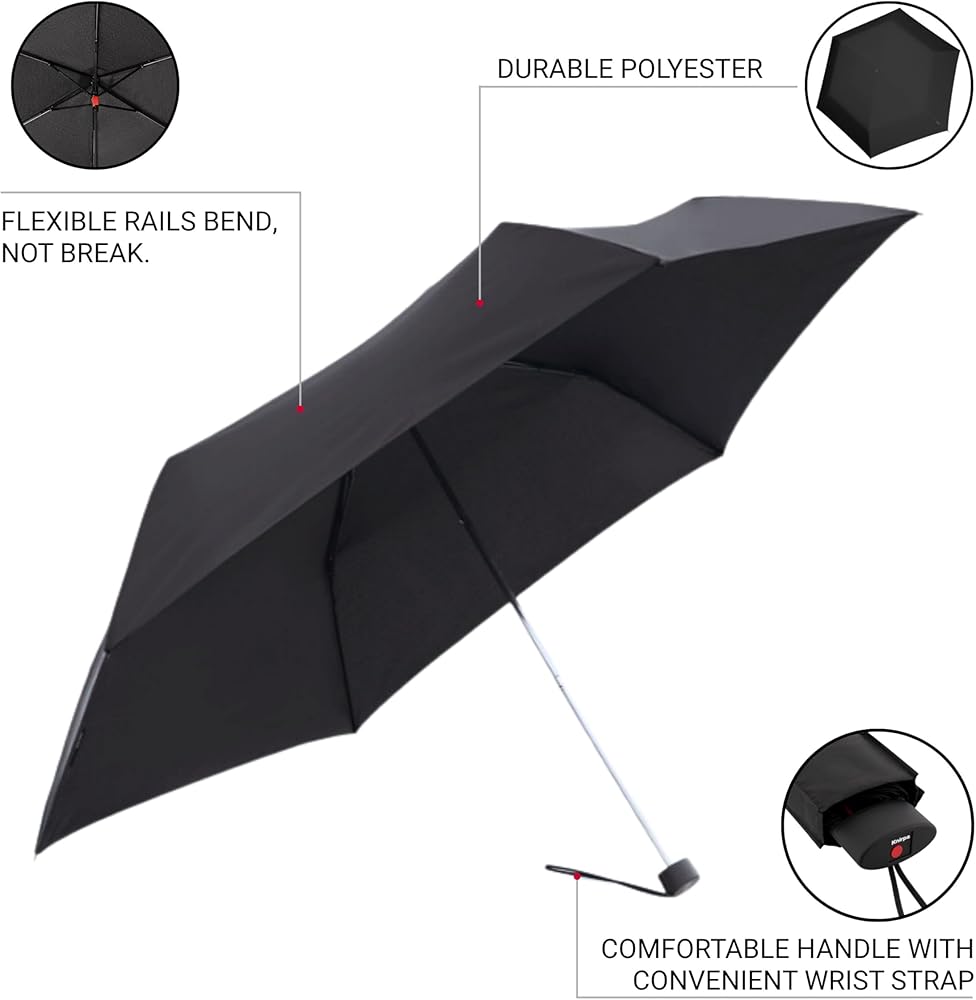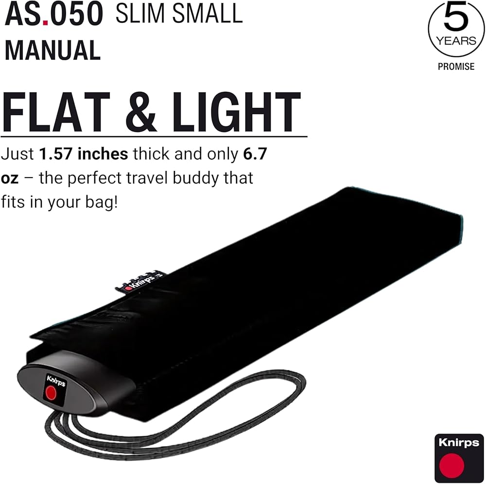 Ultra-Slim & Lightweight for Travel: Weighing just 6.7 ounces and measuring only 9.8 inches when closed, the AS.050 is Knirps' flattest and lightest umbrella—ideal for travel, commuting, or everyday carry.