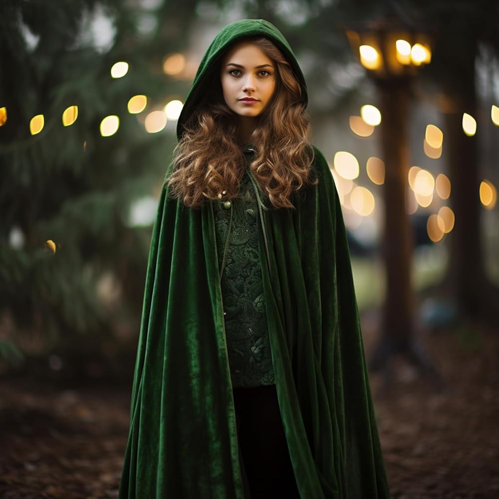 Elegant Style: With its rich color and flowing silhouette, this velvet cloak exudes an air of royalty and sophistication.
