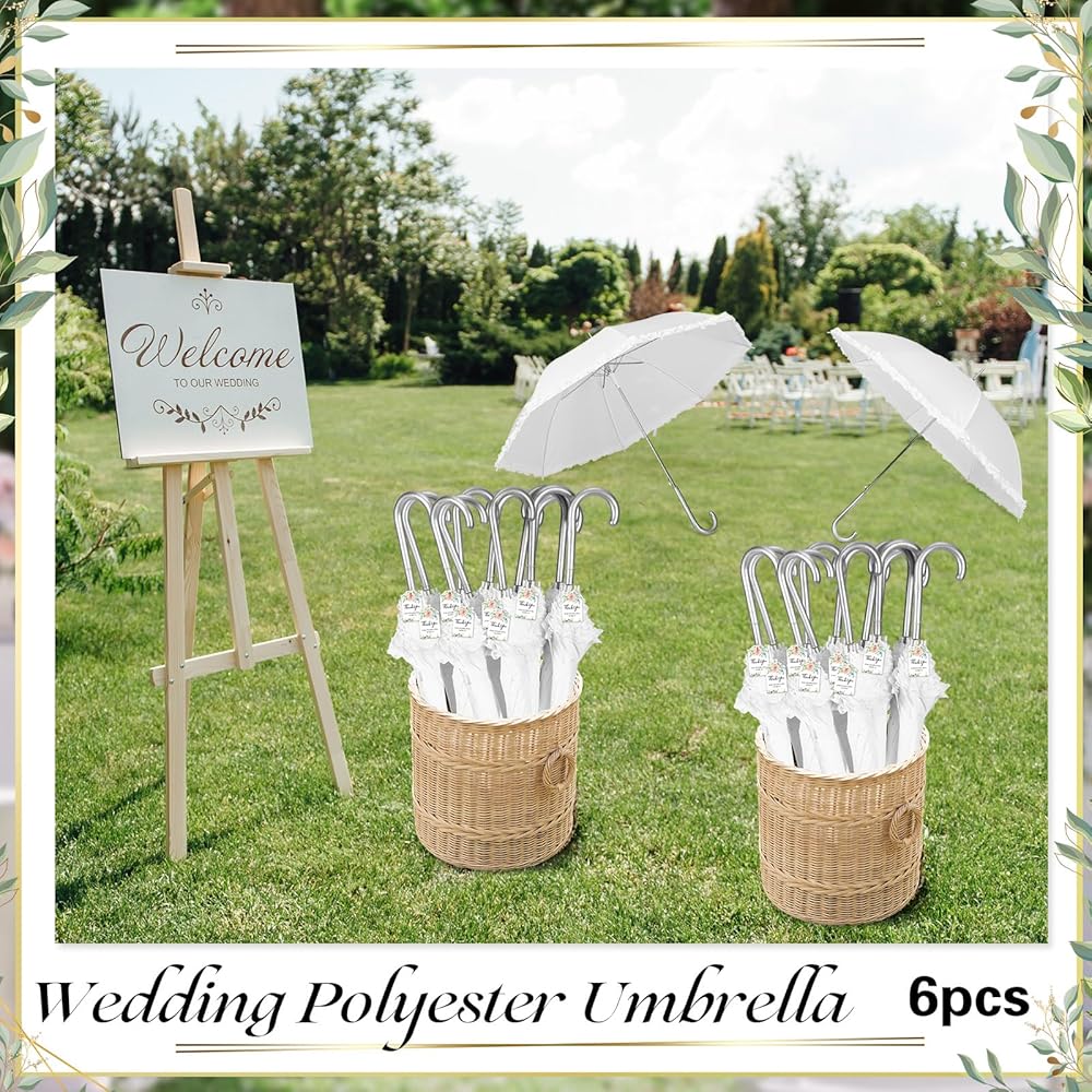 These white wedding umbrellas are crafted from quality metal and polyester cloth, designed for long term use, enough to provide secure coverage for you.