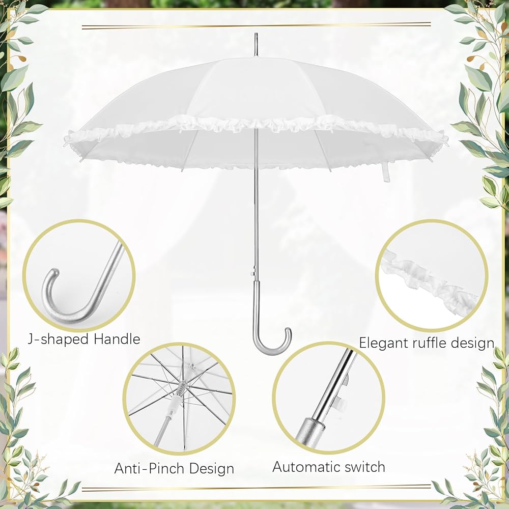 The exquisite ruffle design of these wedding stick umbrellas can add a touch of romance to your wedding, events, parties or photos.