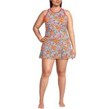 Lands' End Women's Chlorine Resistant Tugless High Neck Swim Dress One Piece Swimsuit