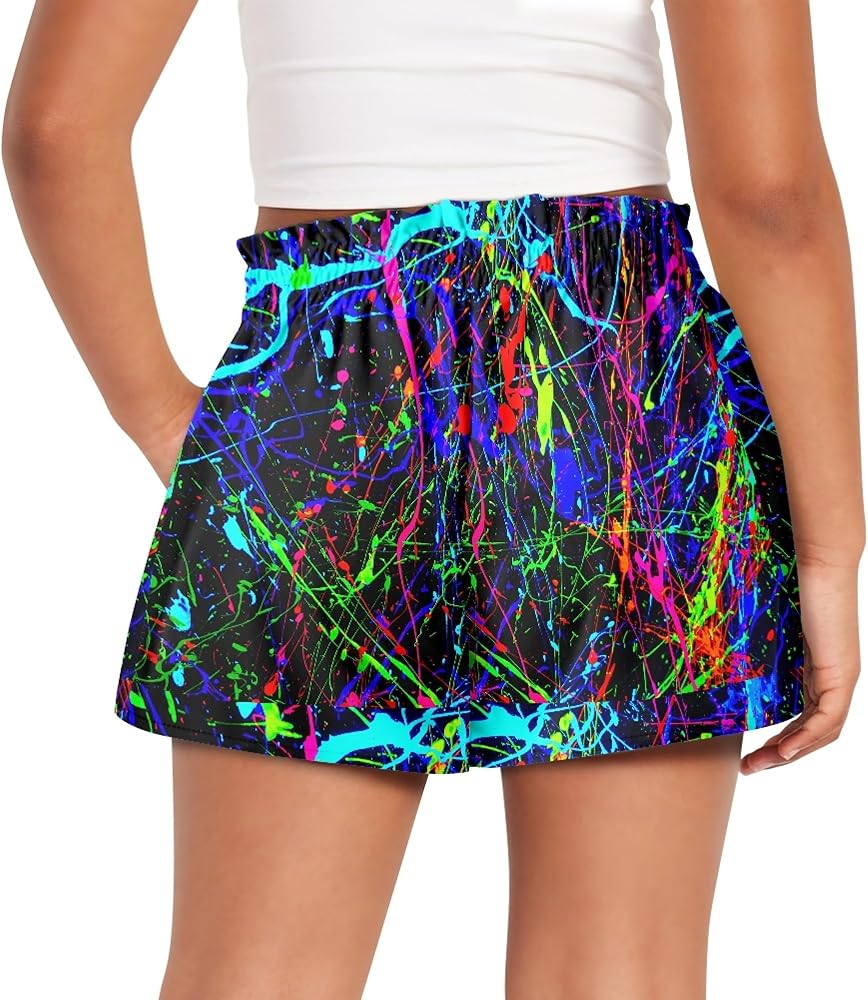 Trendy High-Waist Design: Featuring a high-waist cut that elongates the legs and flatters the figure, these shorts come in vibrant colors and playful patterns including shark , dinosaurs, cherry , zebra and mermaid for a look that's both stylish and fun.