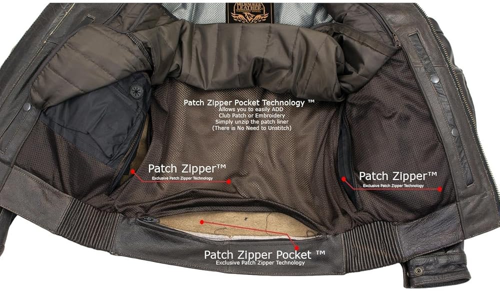 Inside Features Patented Patch Access Technology: Inside ‘Patch Access' Zipper Openings Allow Easier Patches or Embroidery Sewing without Having to Open the Jacket